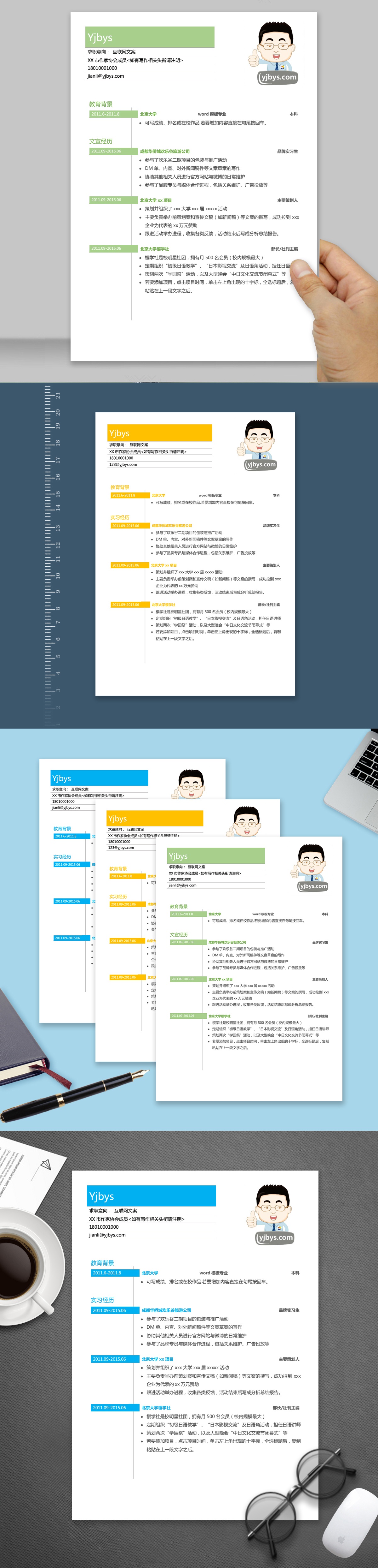 A012常用简历模板橙,蓝,绿