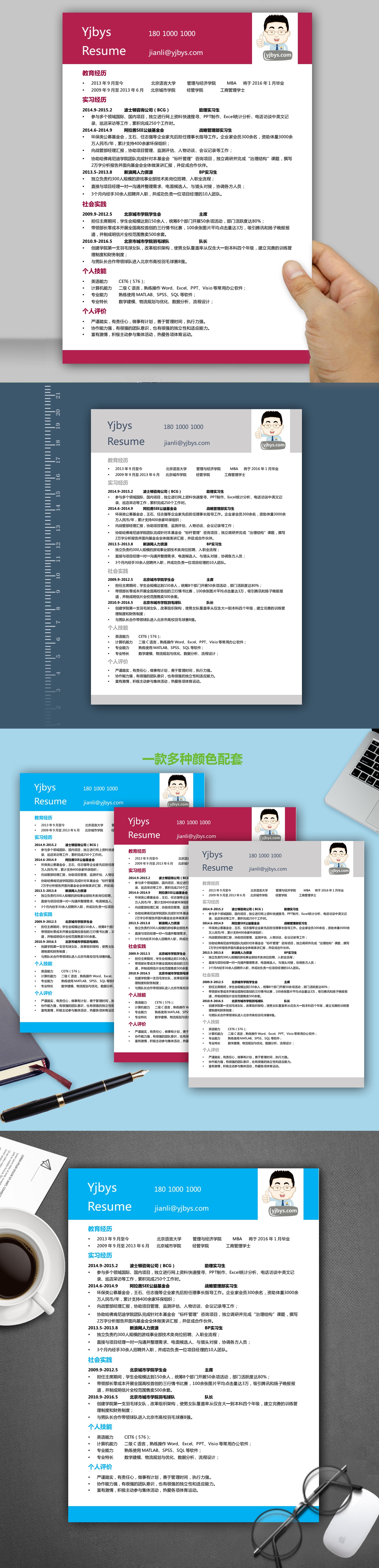 A024简洁欧美简历模板灰色,红色,蓝色