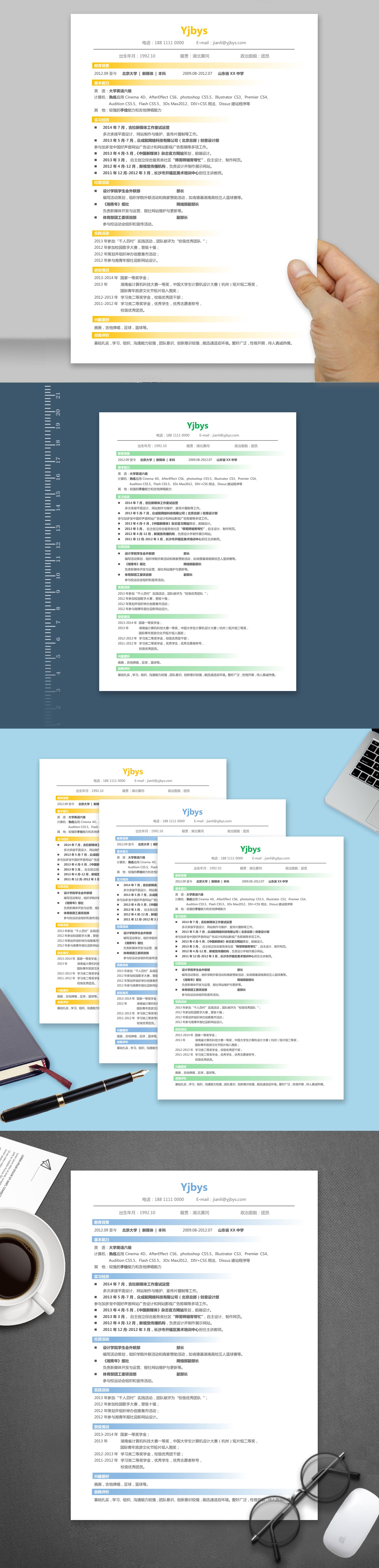 A033简洁简历模板绿色,橙色,蓝色