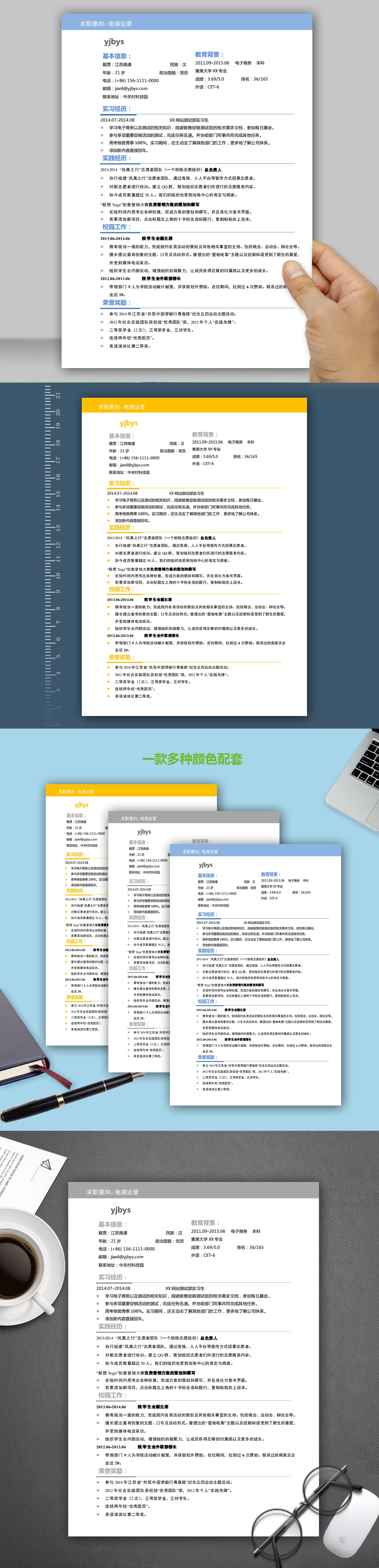 A035简单风格简历模板蓝,橙,灰