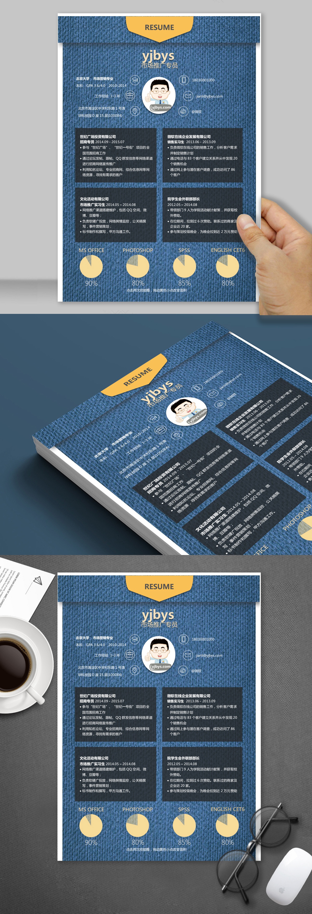A049牛仔底纹创意简历模板