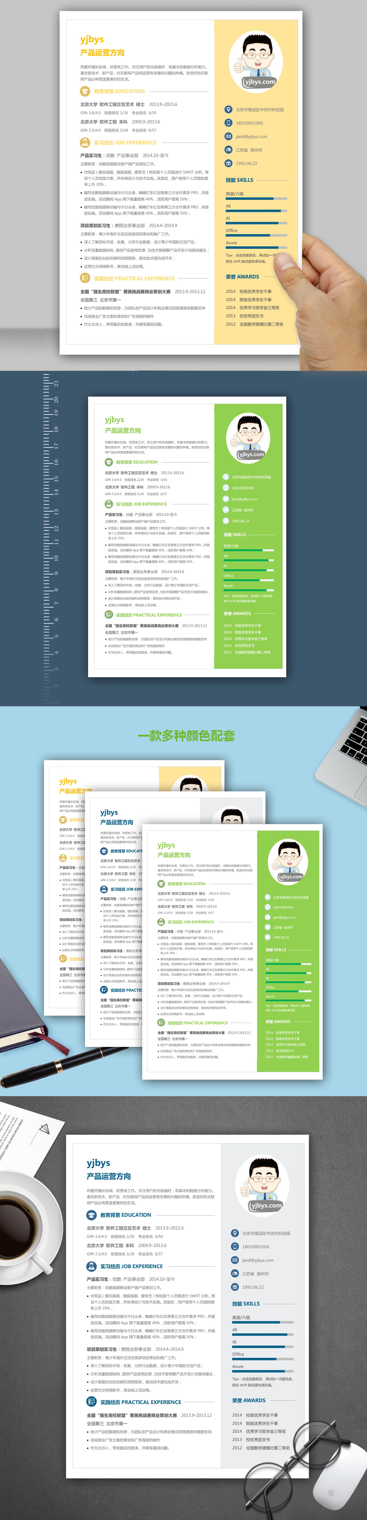 A050欧美风简洁简历模板灰,黄,绿