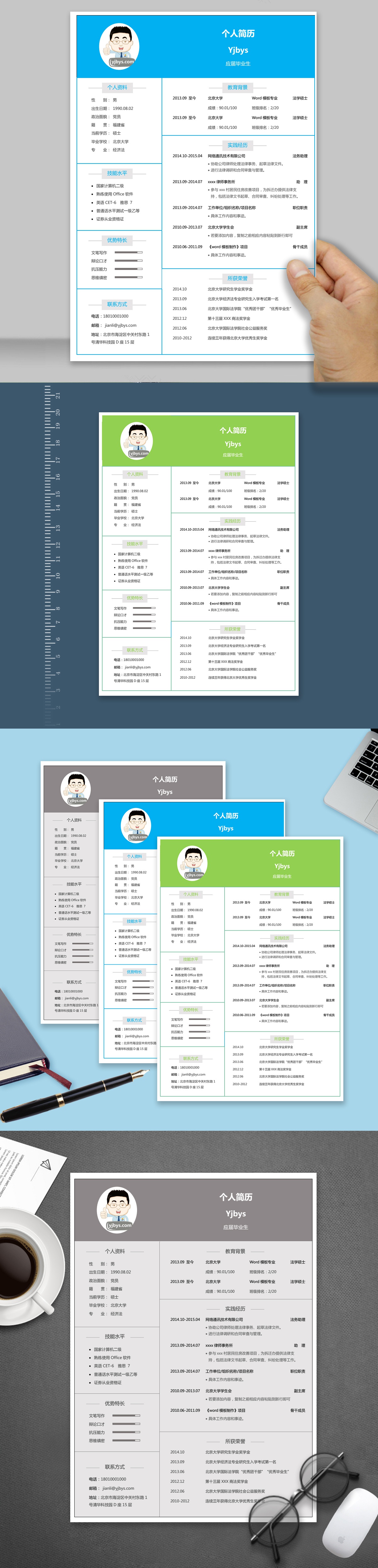 A055严肃规整简历模板绿,灰,蓝