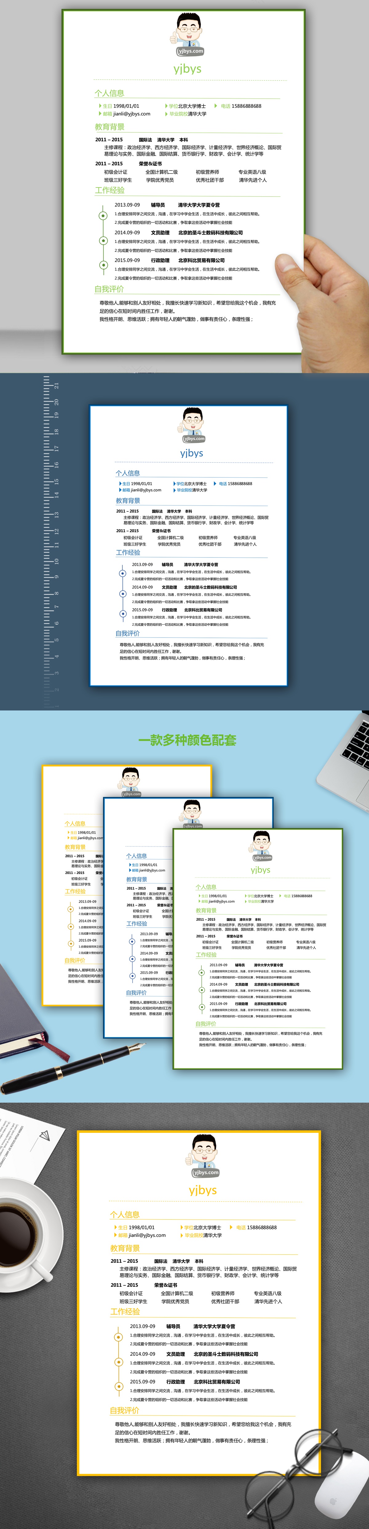 A059简洁简历模板蓝,橙,绿