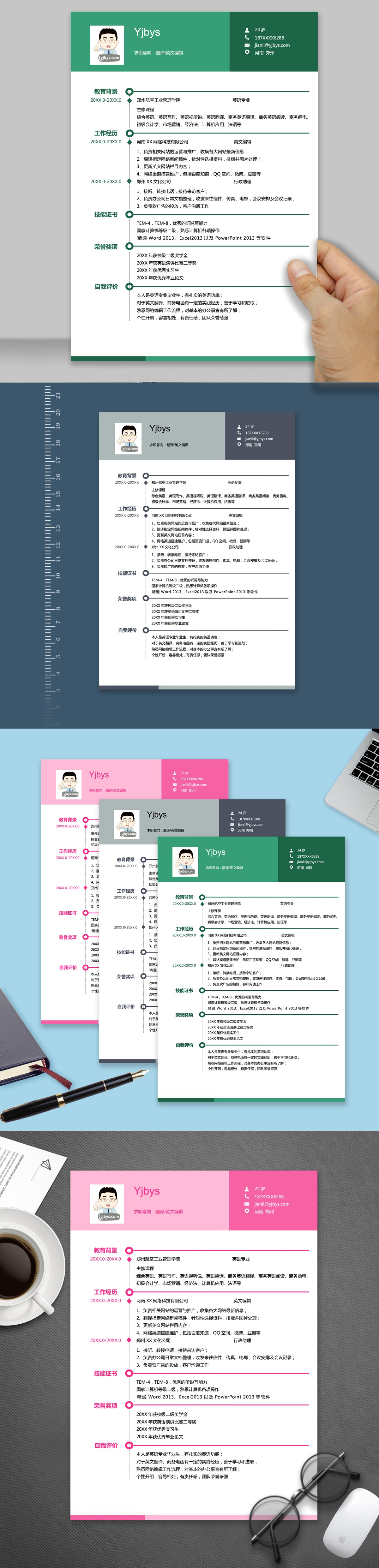 A069常用简历模板深绿,粉红,深灰
