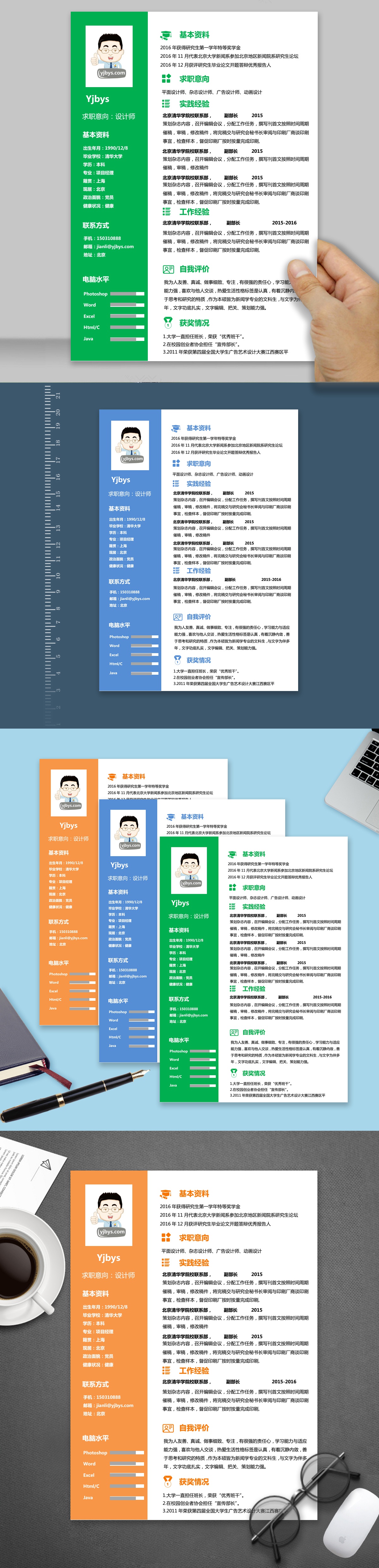 A079常用简历模板蓝,橙,绿