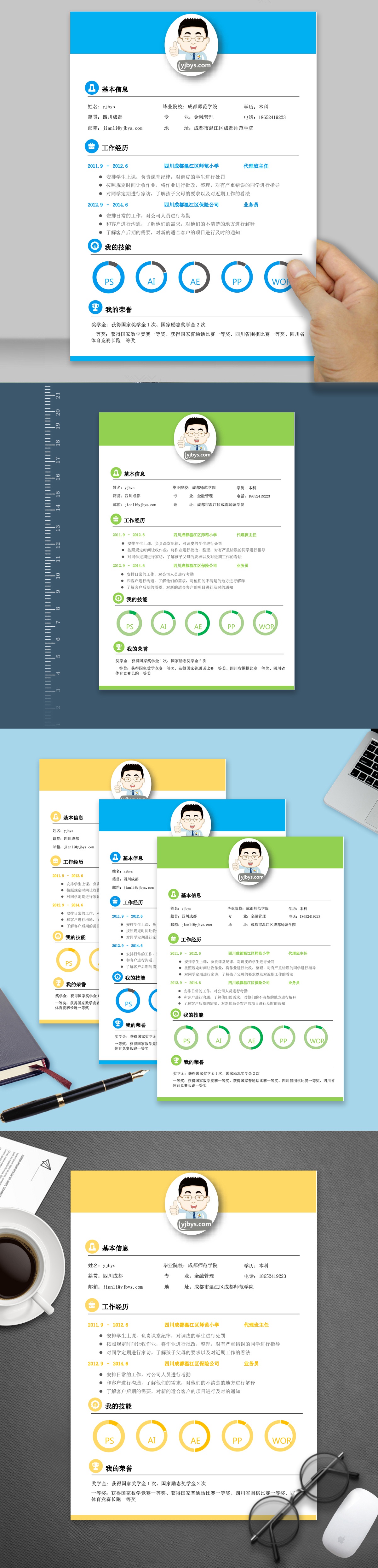 A095常用简历模板蓝,黄,绿
