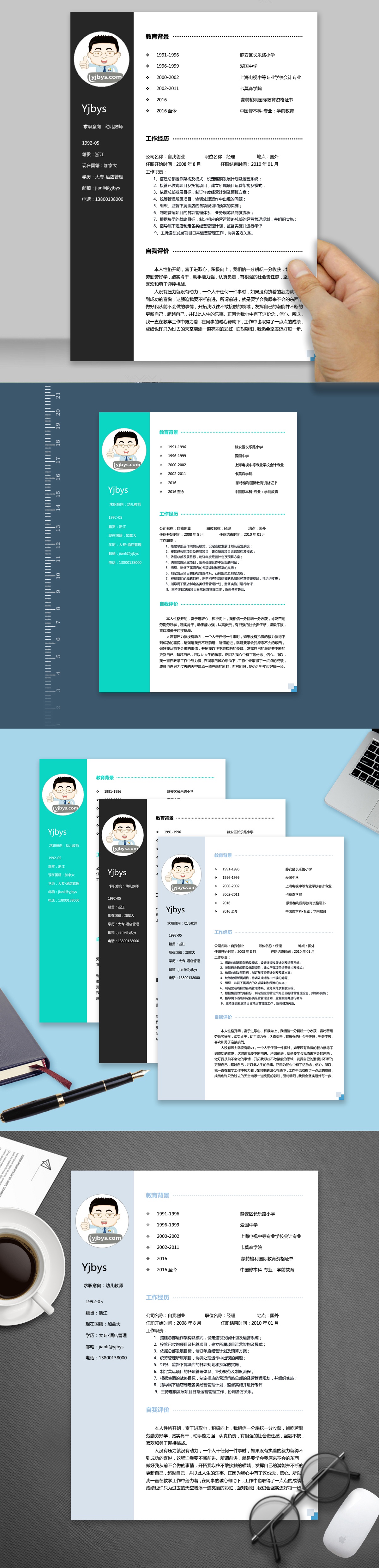 A109常用简历模板黑,蓝,青