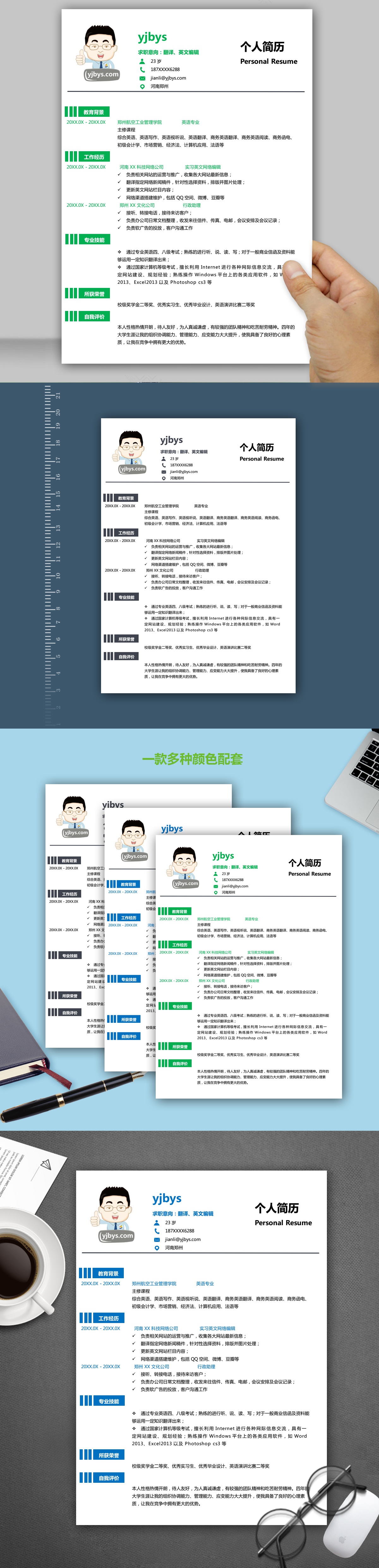 A121简约简历模板灰,蓝,绿