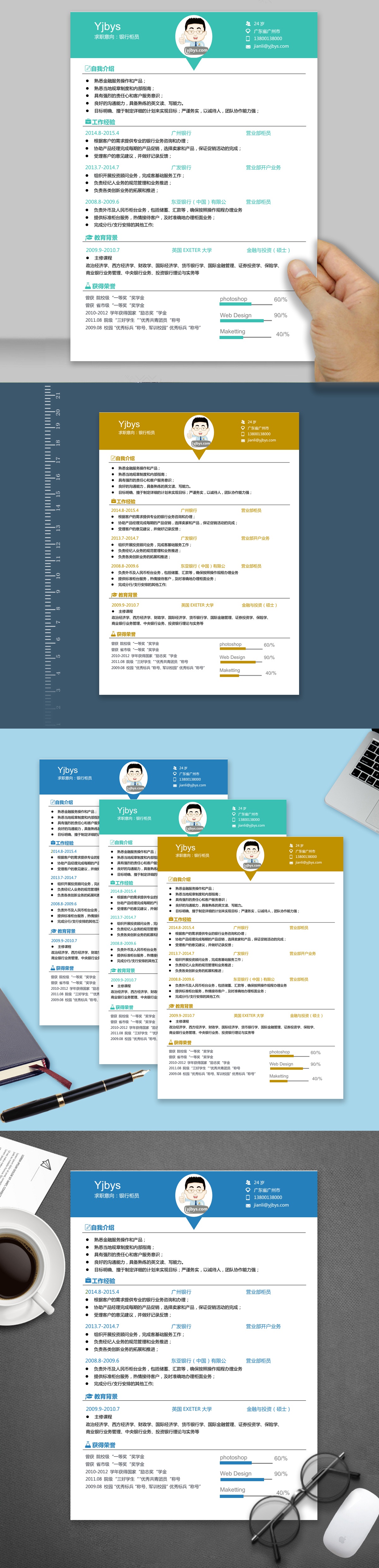A124常用简历模板蓝,褐,青