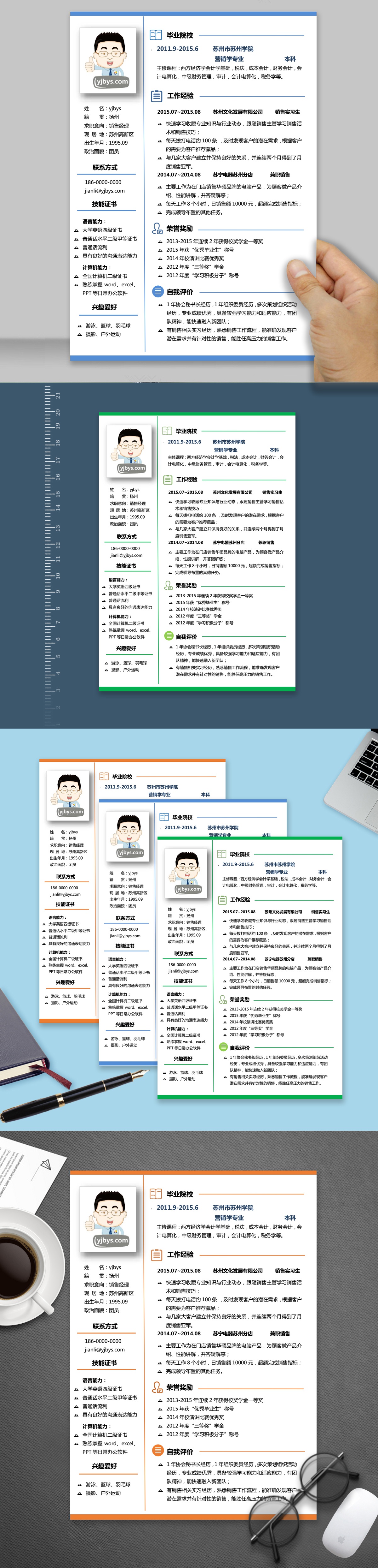 A134常用简历模板橙,蓝,绿