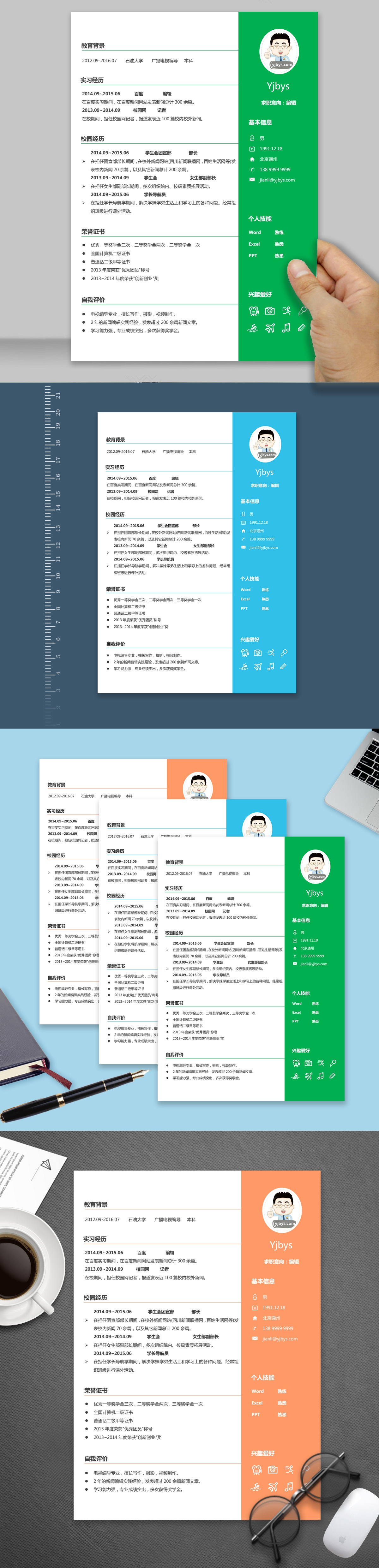 A145常用简历模板蓝,橙,绿