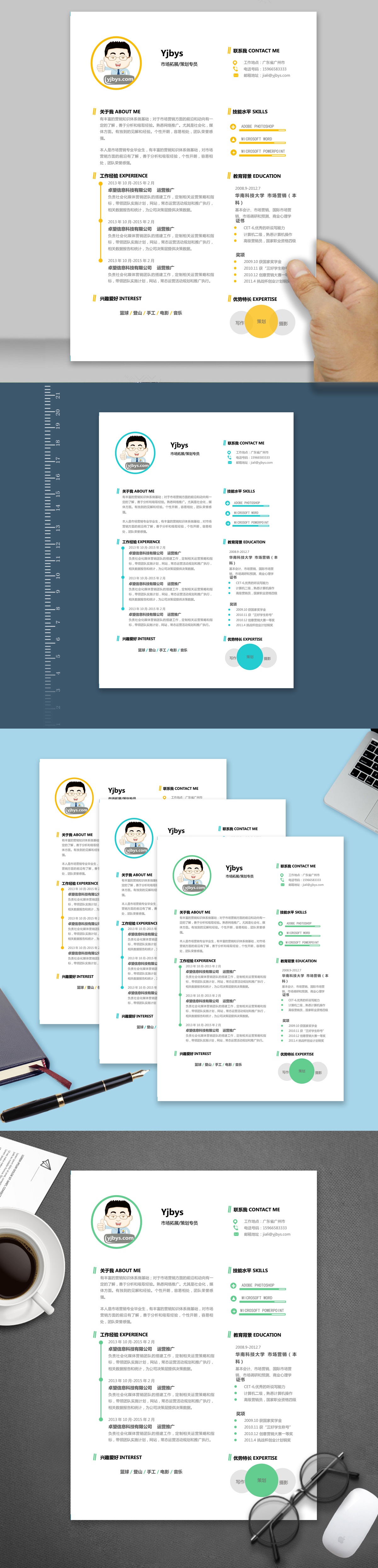 A155常用简历模板黄,蓝,绿