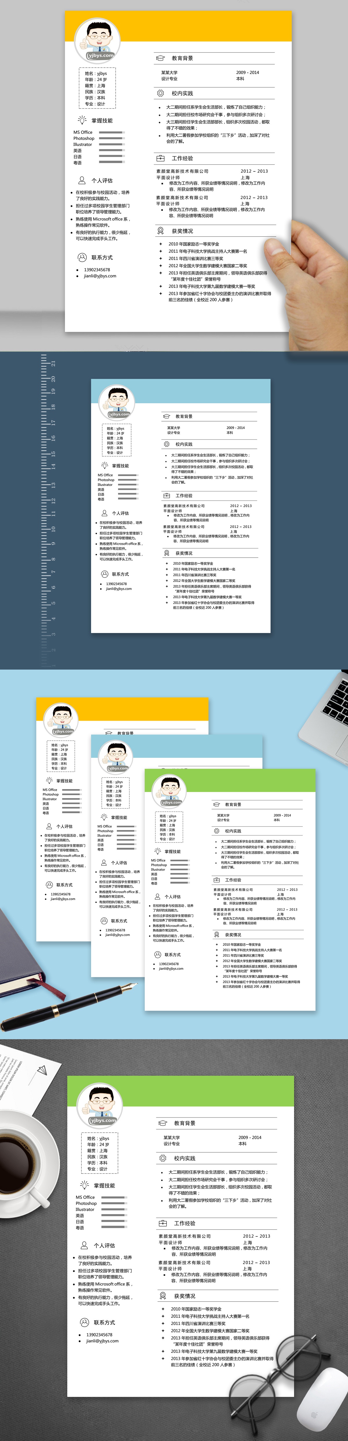 A159常用简历模板蓝,橙,绿