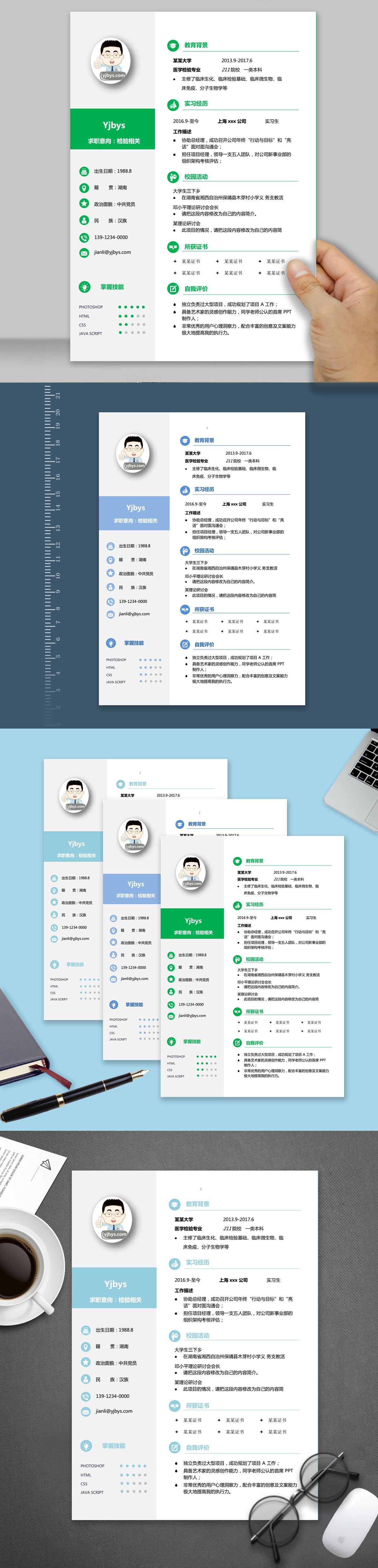 A163常用简历模板淡蓝,蓝,绿