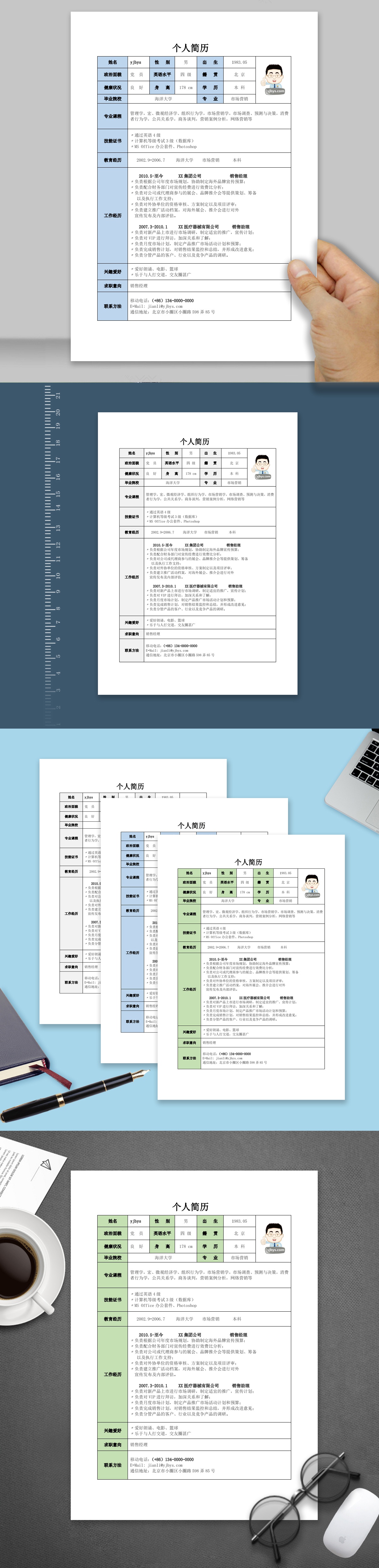 A171表格简历模板蓝,灰,绿