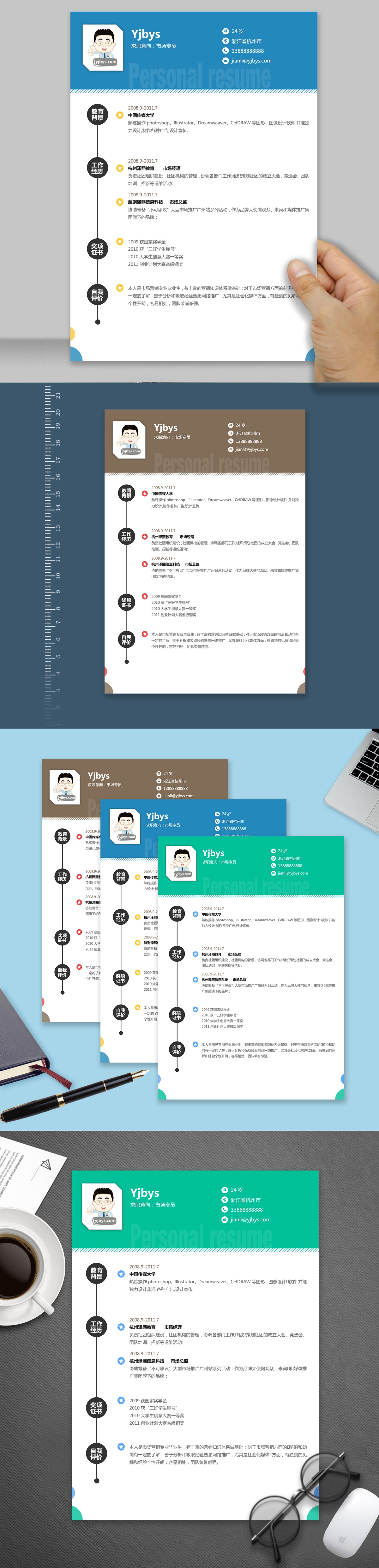 A180常用简历模板绿,褐,蓝