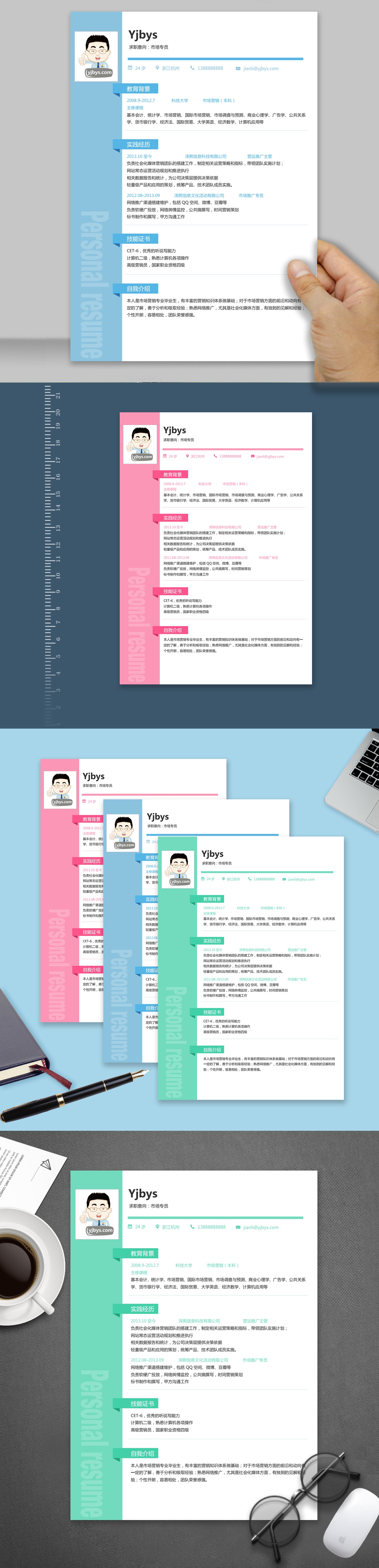 A182常用简历模板蓝,粉,绿