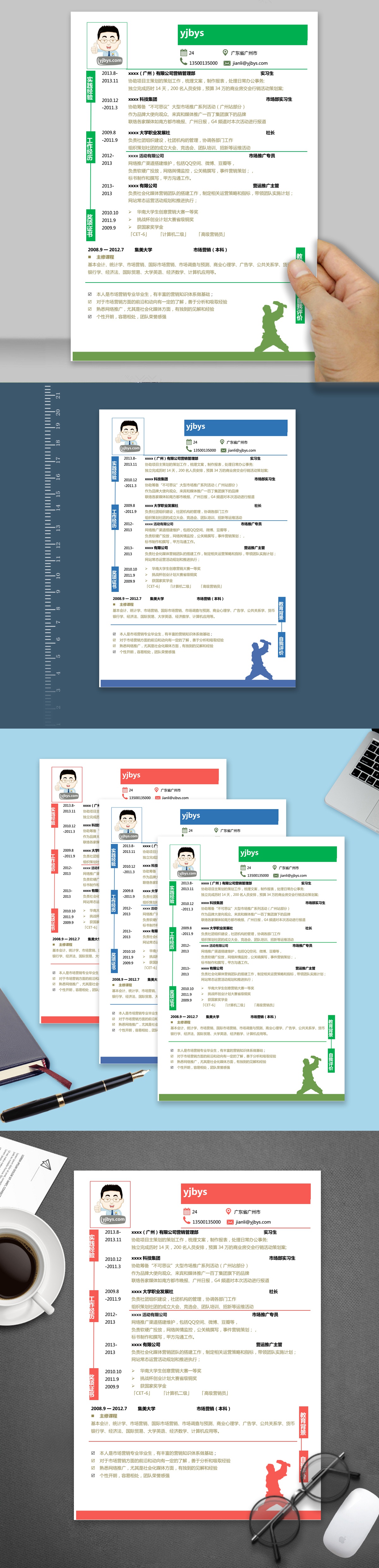 A199常用简历模板蓝,红,绿