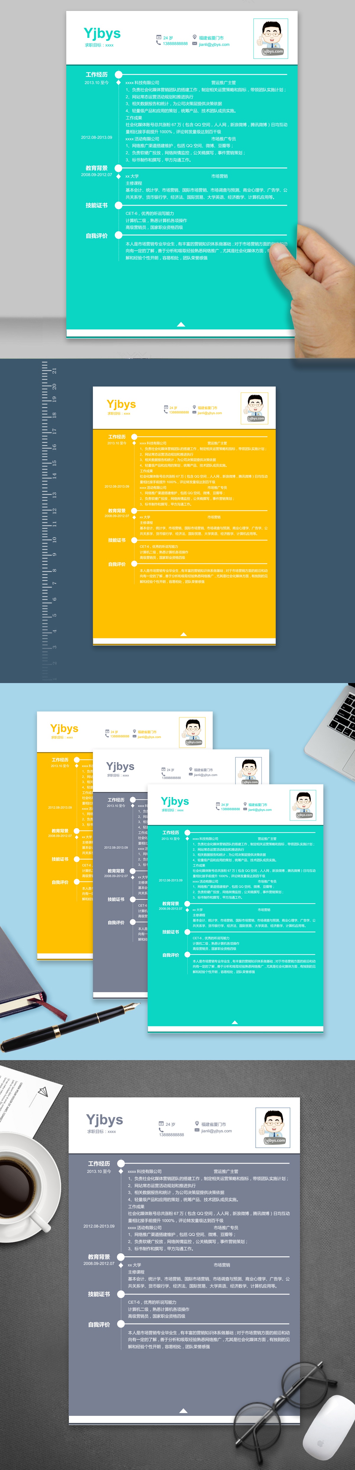 A202常用简历模板蓝,黄,青