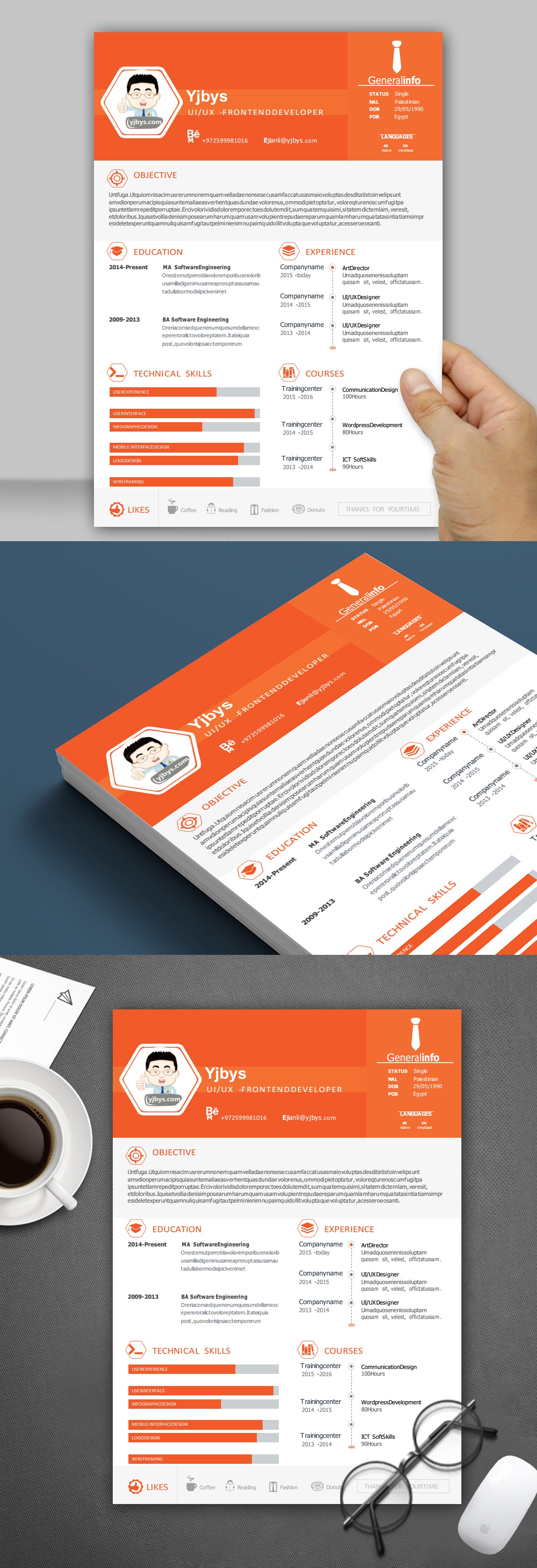 A216英文橙简历模板