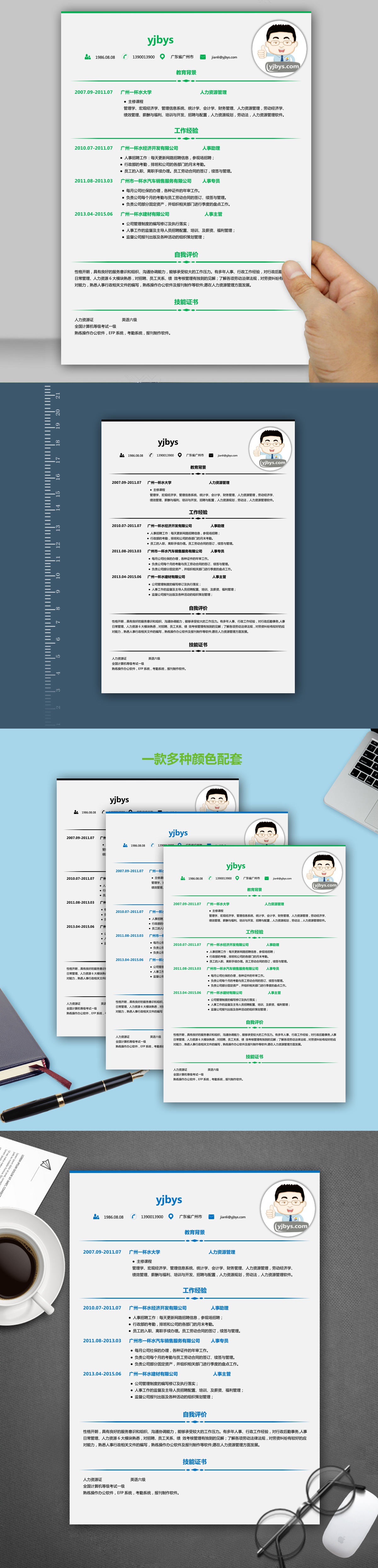 A420简约简历模板灰,蓝,绿
