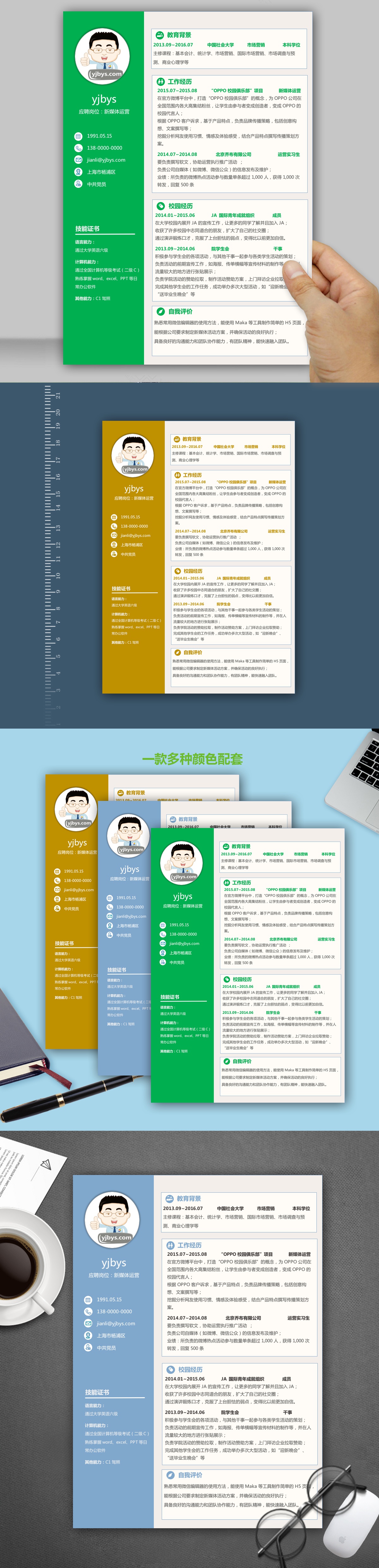 A421简约简历模板绿,褐,蓝