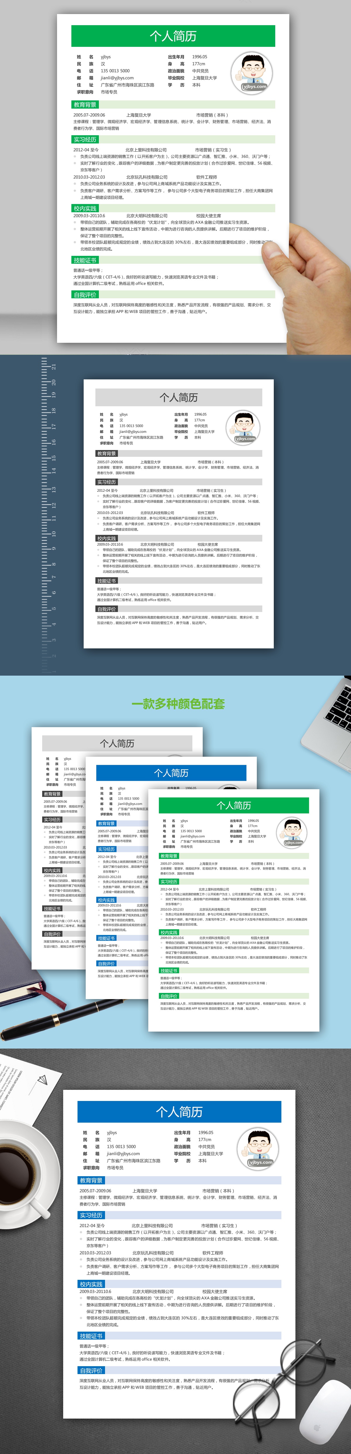 A429简约简历模板灰,蓝,绿
