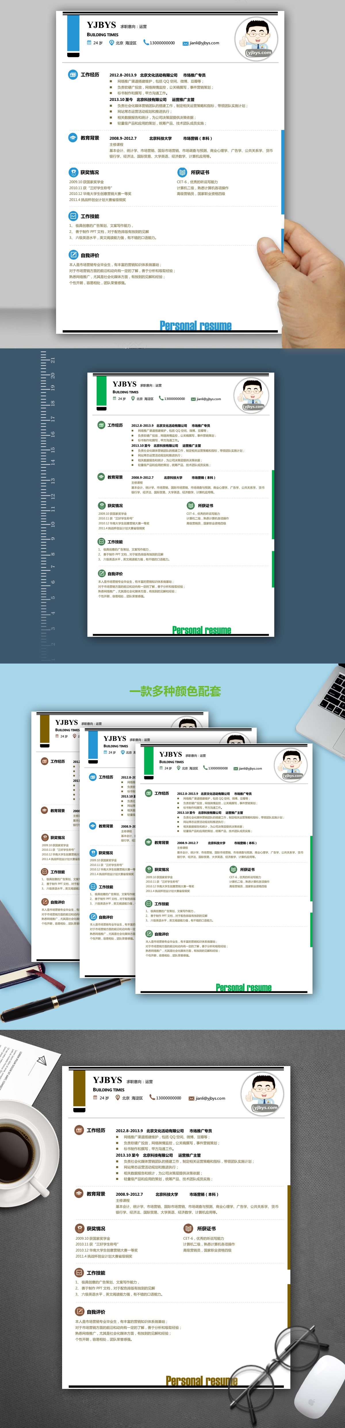 A460简约简历模板绿,褐,蓝