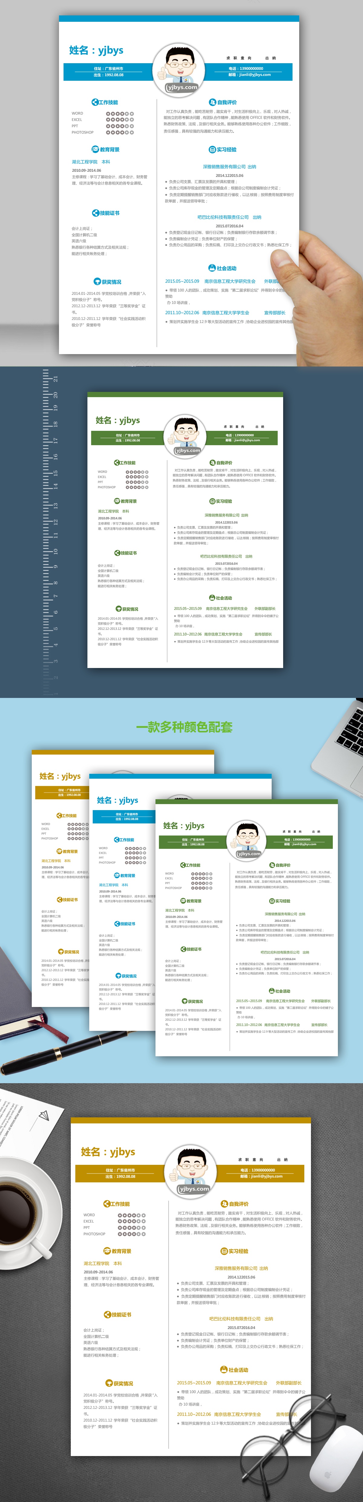 A471简约简历模板蓝,褐,绿