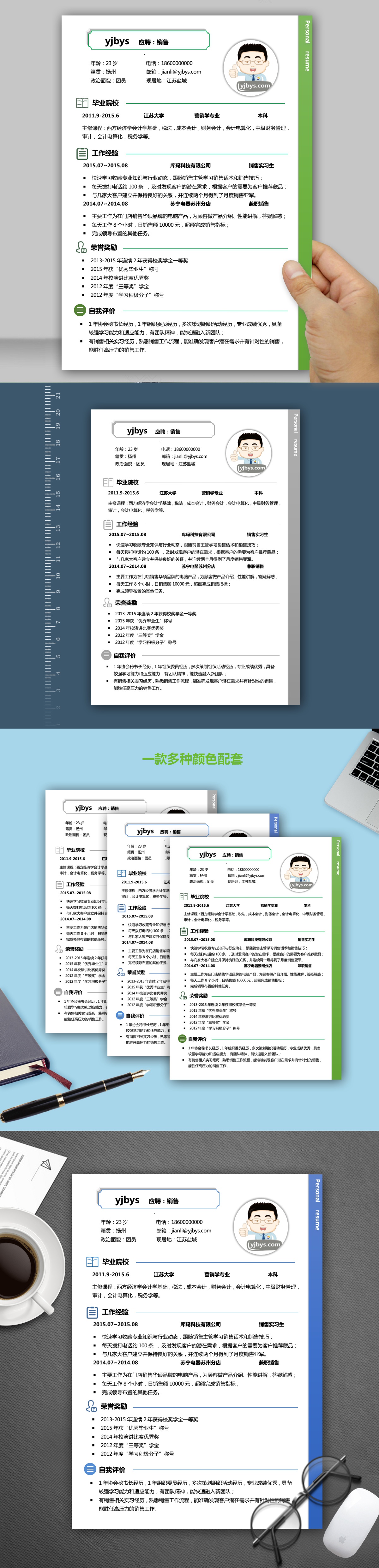 A474简约简历模板灰,蓝,绿