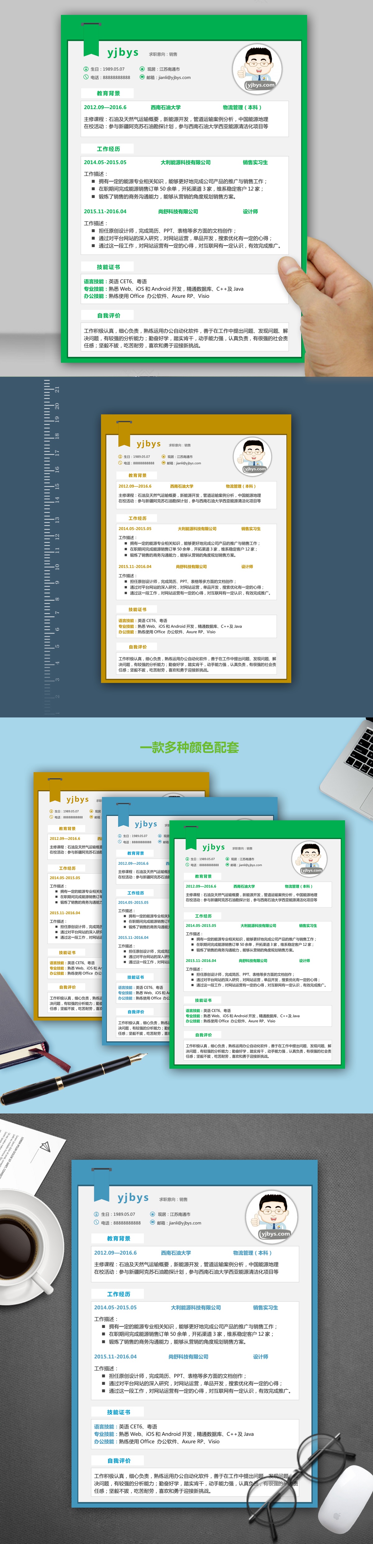 A477简约简历模板蓝,褐,绿