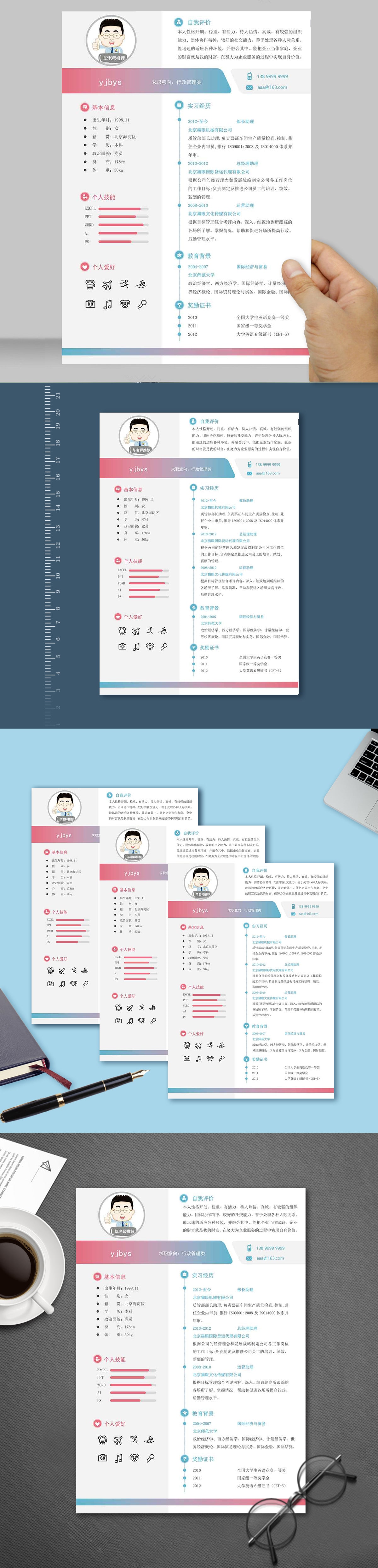 A560常用简历模板粉蓝