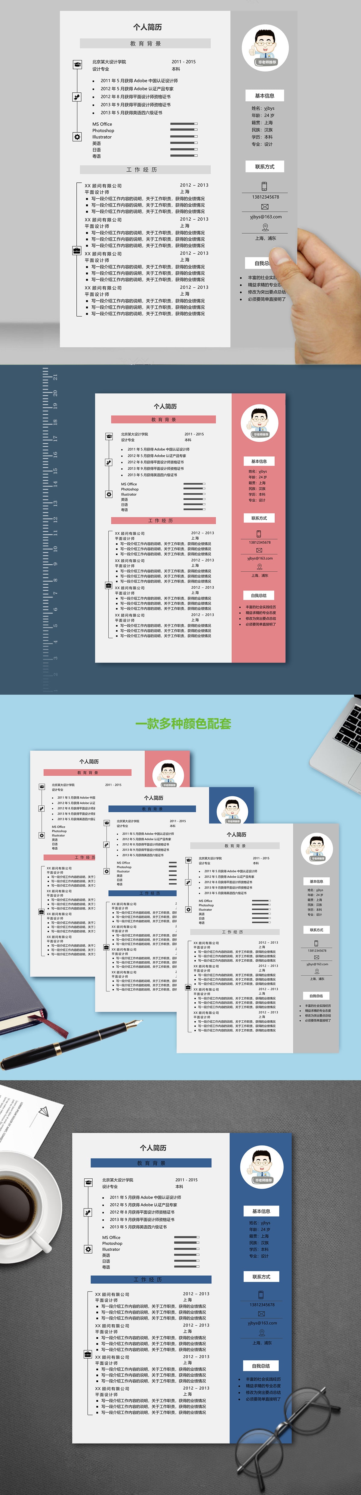A566常用简历模板蓝,粉,灰