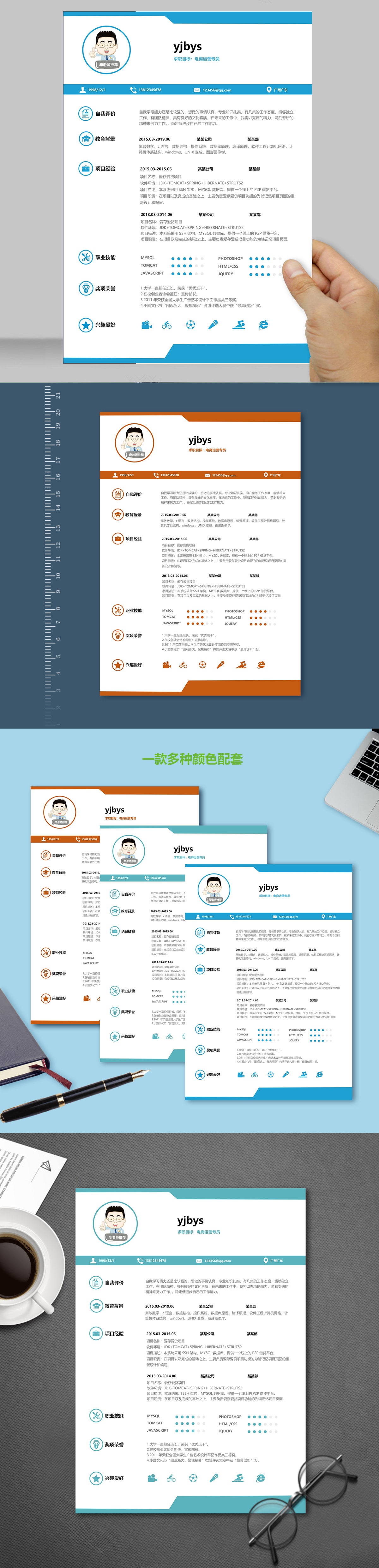 A573常用简历模板青蓝,红橙,青灰
