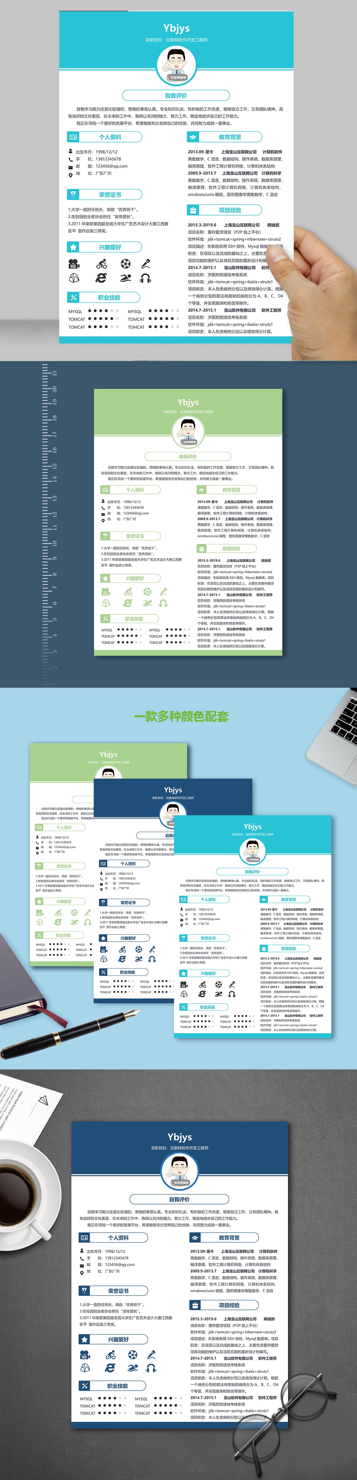A575常用简历模板蓝,绿,青