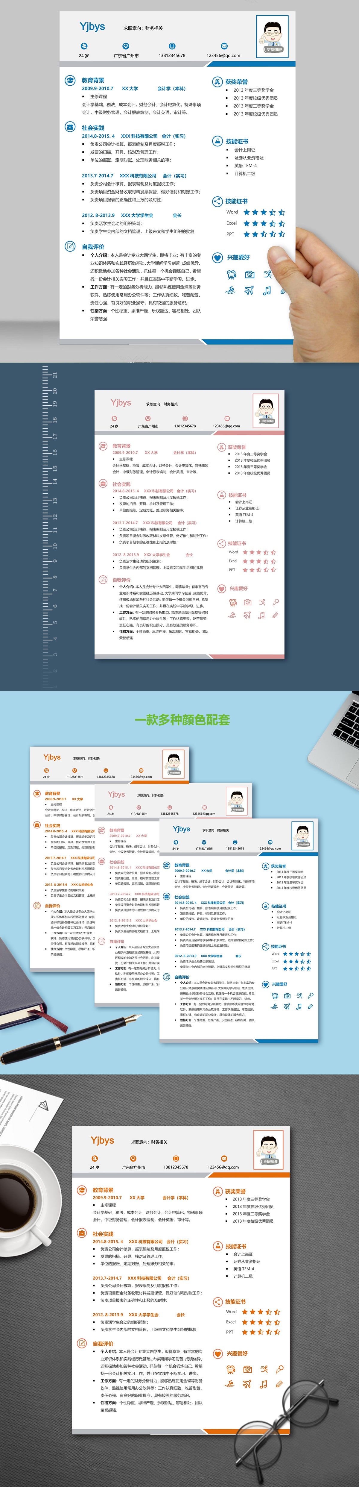 A585常用简历模板深蓝,橙色,粉红