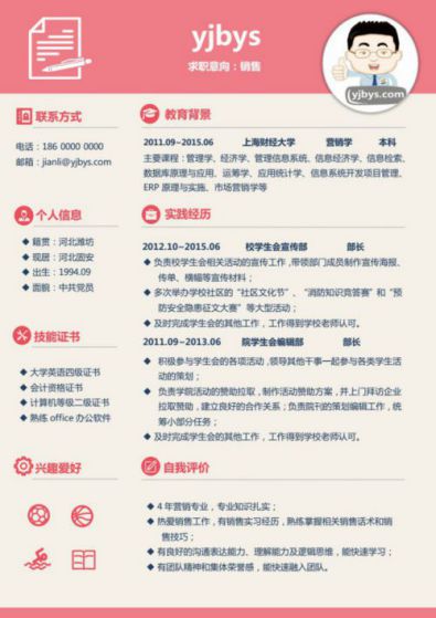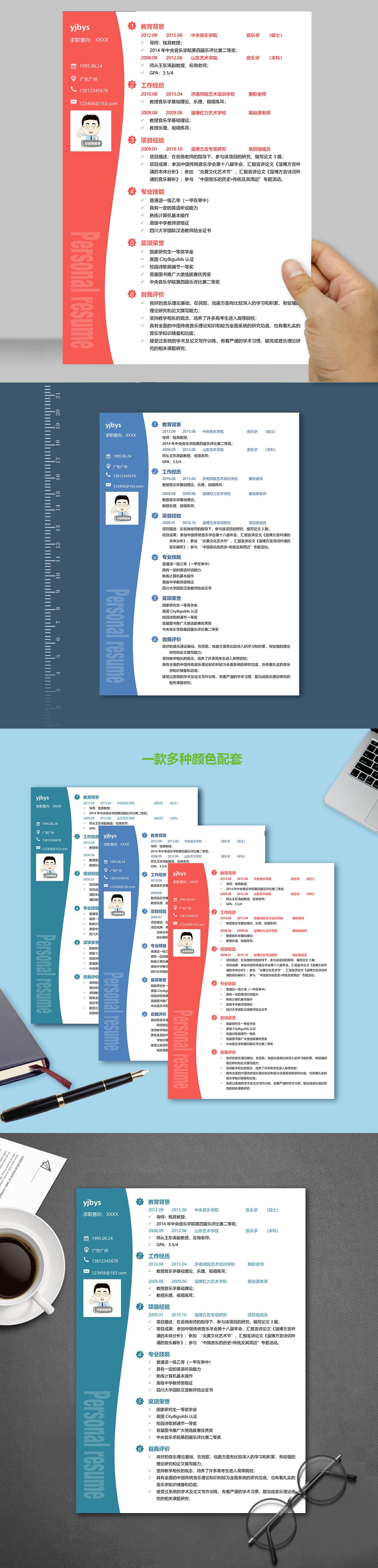 A597创意简历模板浅红,蓝色,深绿