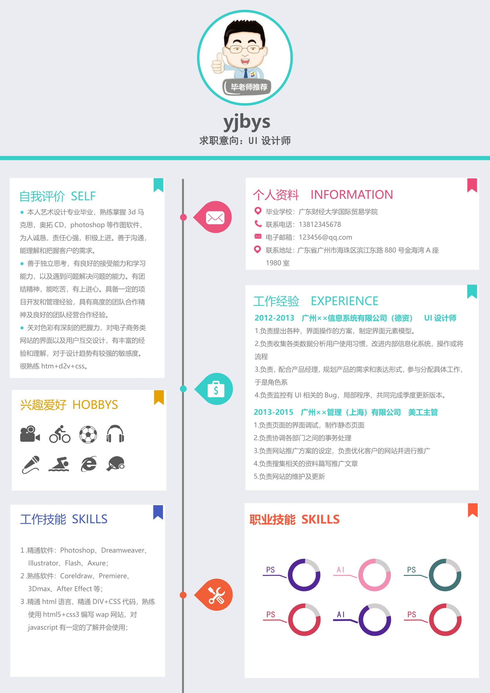 A600创意简历模板黑色,淡蓝,橙色