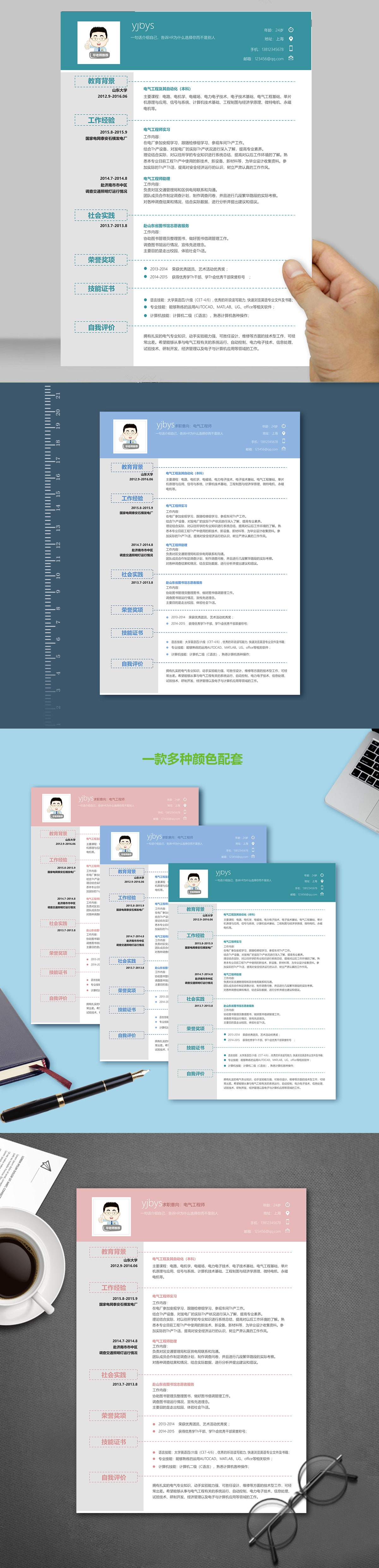 A605简约简历模板青色,蓝色,粉色