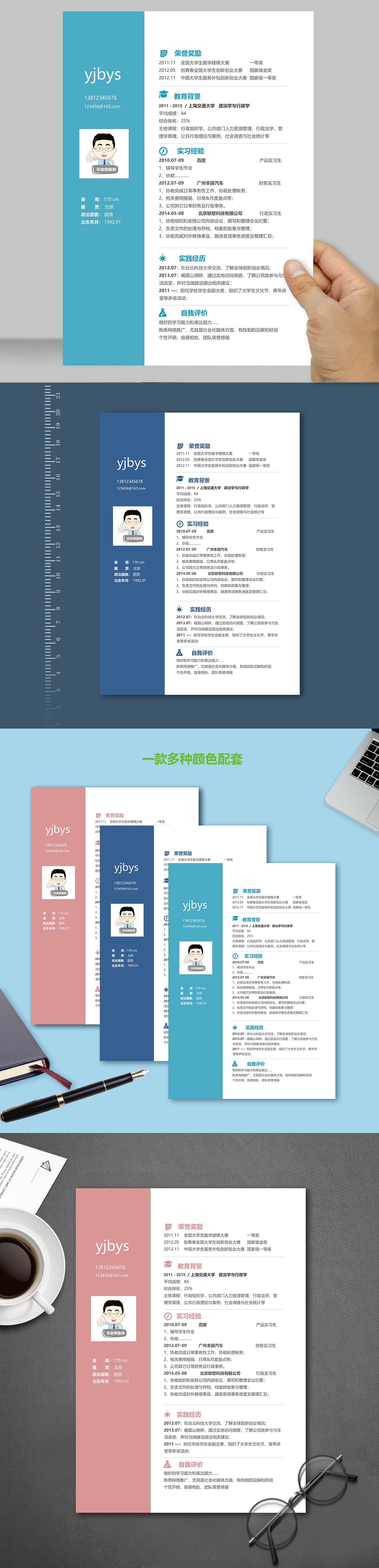 A622简约简历模板青色,蓝色,粉色