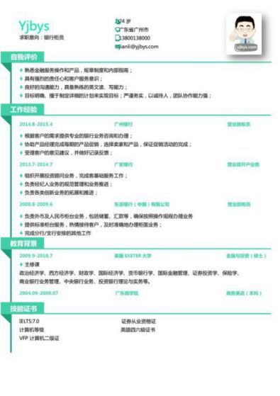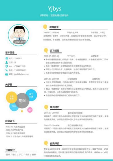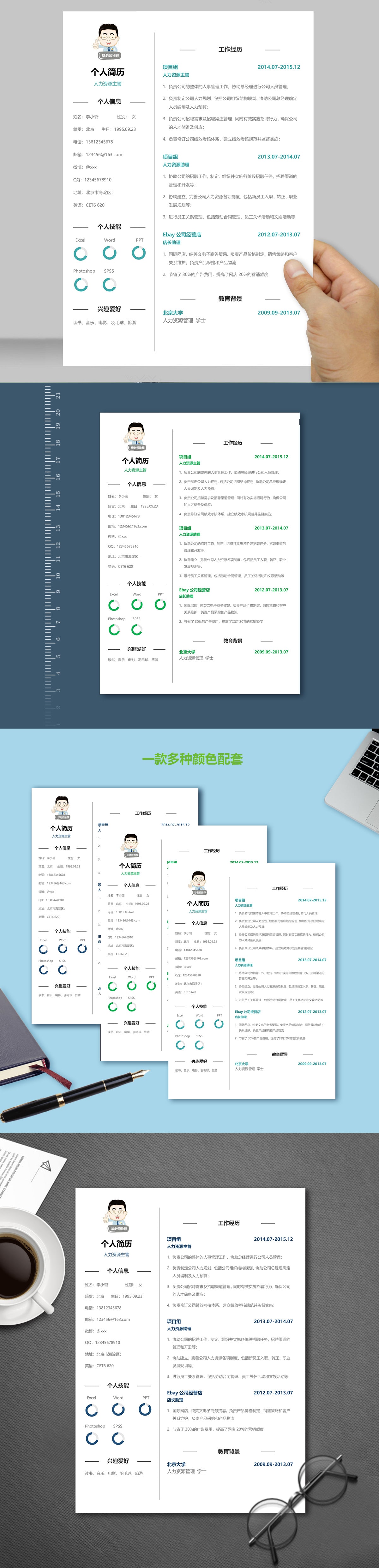 A624简约简历模板青色,蓝色,绿色