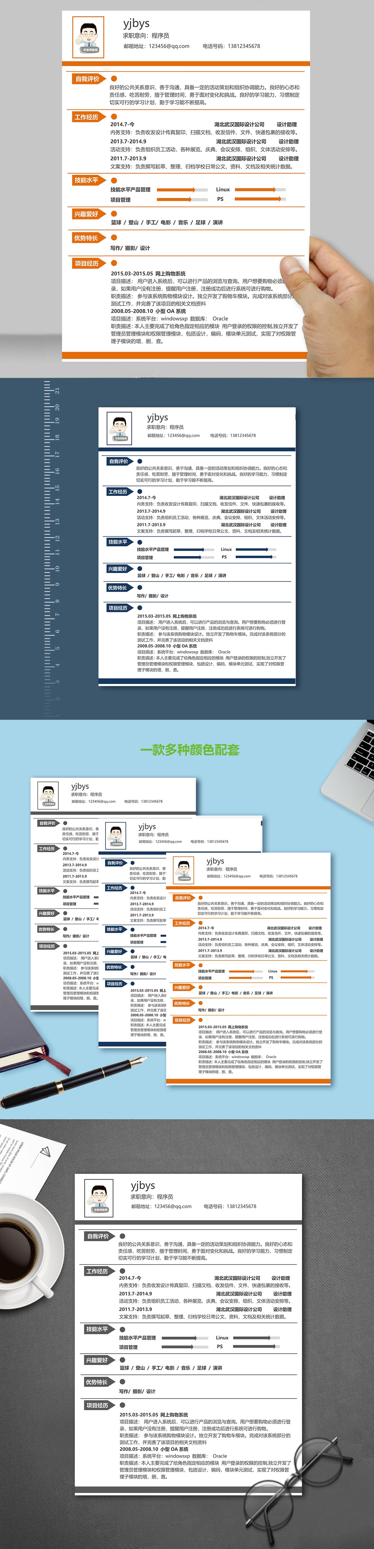 A626简约简历模板橙色,蓝色,灰色