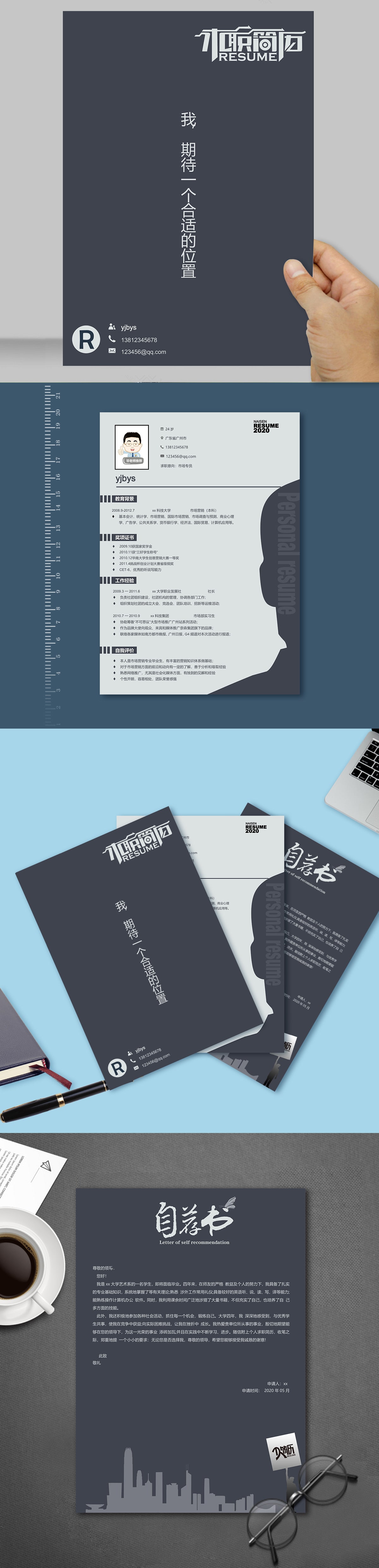 A645套装简历模板深灰色