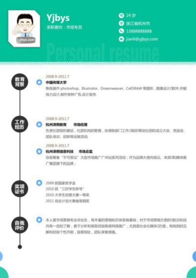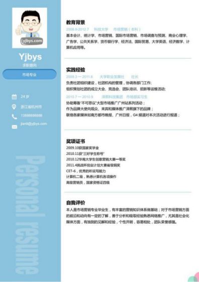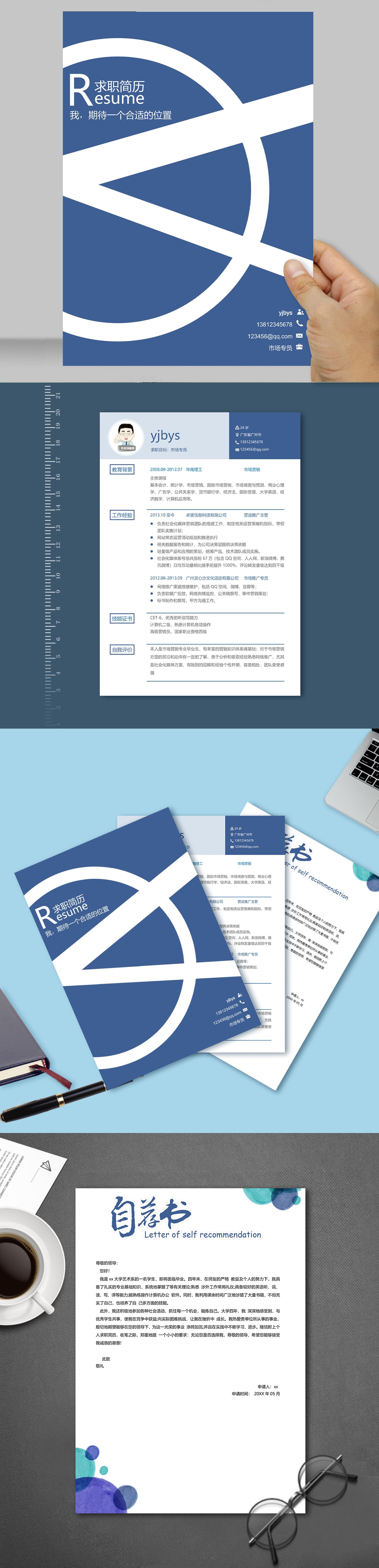 A647套装简历模板蓝色